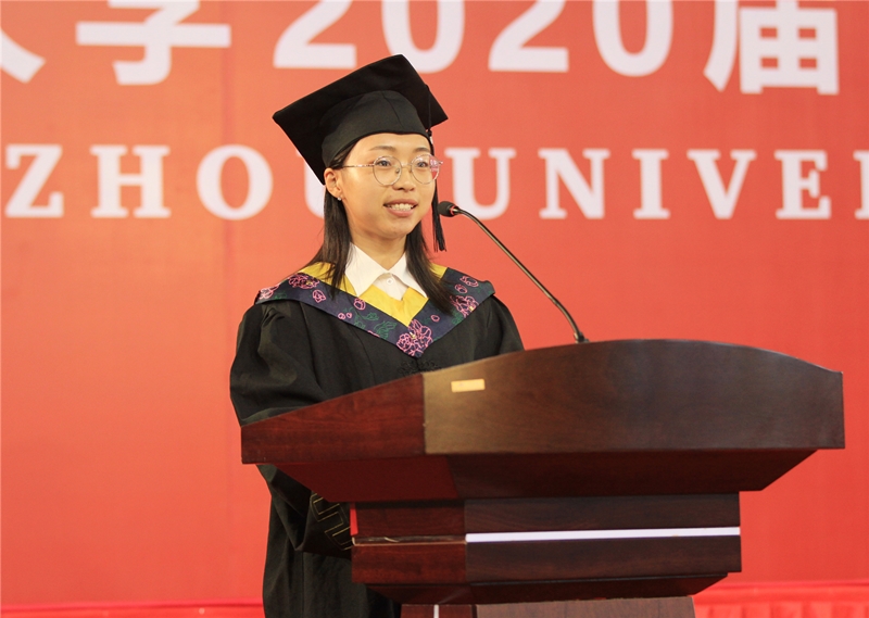 毕业生代表丁天祺向大学期间所有关心、帮助和包容过同学们的师长和亲友表示感谢。她回望大学四年的成长,表示感触最深的是对自己所爱,日渐明晰,“感谢母校赋予我们的对宏大问题的关注和思考,对自己专业领域外的探索,以及扎根在我们心底深处的责任意识” 。