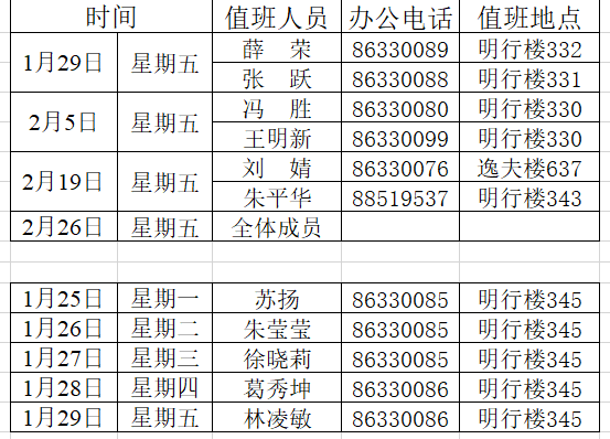 环境与安全工程学院 城市建设学院2021年寒假值班人员安排表