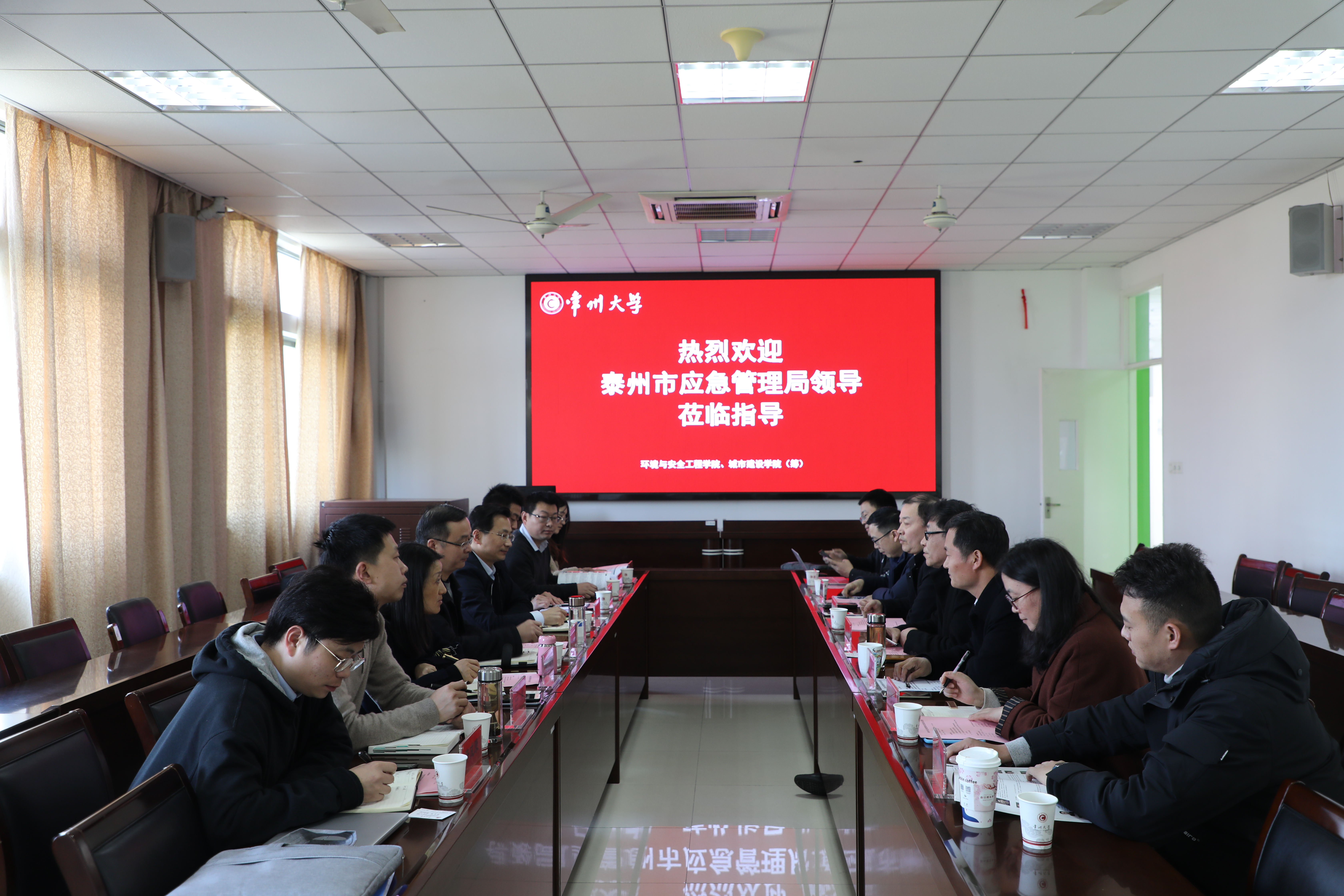 张跃院长代表学院对泰州市应急管理局各位领导的到来表示热烈欢迎,并向各位来宾介绍了学院人才培养、科学研究、学科建设、教育教学、社会服务等基本情况。王建春副局长介绍了泰州市应急管理局的相关情况。邢志祥副院长介绍安全科学与工程学科建设情况。