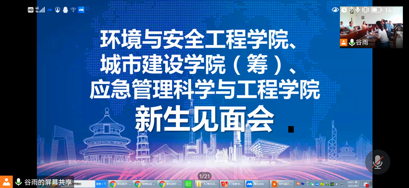9月7日下午,环境学院在明行楼3楼会议室召开2021级研究生新生网上见面会暨导师双选会。学院党委书记薛荣、院长张跃、江苏省技术转移(常州大学)研究院副院长姚娟、学院副院长王明新、副院长朱平华、副院长欧红香、研究生教务秘书葛秀坤、研究生辅导员王国宇、王永出席会议。