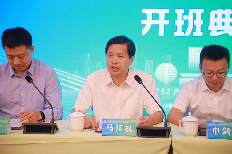 开班仪式由常州大学环境科学与工程学院党委书记薛峰主持。仪式上,马江权院长代表学校致欢迎辞,对各位领导的莅临指导及企业家学员的到来表示热烈欢迎,并系统介绍了常州大学在新能源材料研发、储能技术创新、绿色低碳学科建设及高层次人才培养等领域的特色优势与成果。他明确表示,学校将充分发挥学科、平台与师资优势,为研修班量身打造优质教学方案,全力提供高质量教学保障与精细化服务支持,确保学员学有所获。