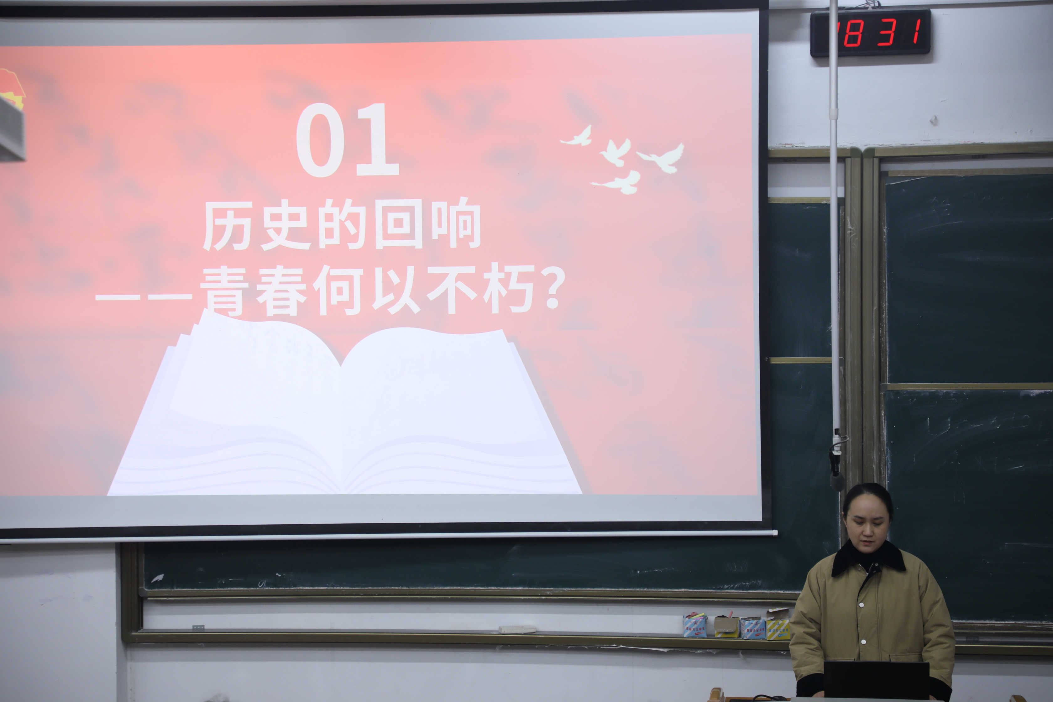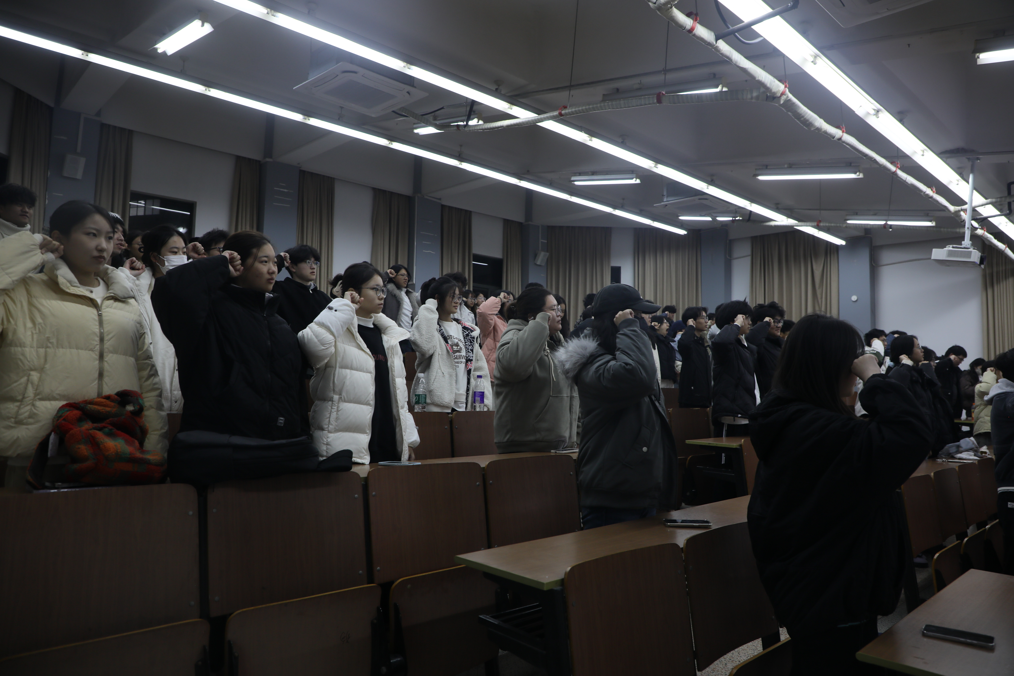 讲座开篇,宗佳瑛抛出“我,为什么入团?”核心问题,引发同学们深度思考与思想碰撞。随后,讲座以视频切入历史维度,通过讲述李大钊等革命先辈事迹、详解团徽团旗象征意义,生动诠释“青春何以不朽”。在当代实践篇章,宗佳瑛聚焦“青春何以闪亮”,列举新时代模范青年故事,分享九三阅兵现场常州大学两位团员风采,同时引导同学们发掘身边榜样、分享优秀团员事迹,为成长注入动力。讲座尾声,全体同学庄严重温入团誓言,坚定理想信念,宗佳瑛详细介绍入团入党基本流程。最终,讲座在齐唱《光荣啊,中国共青团》的激昂旋律中圆满落幕。