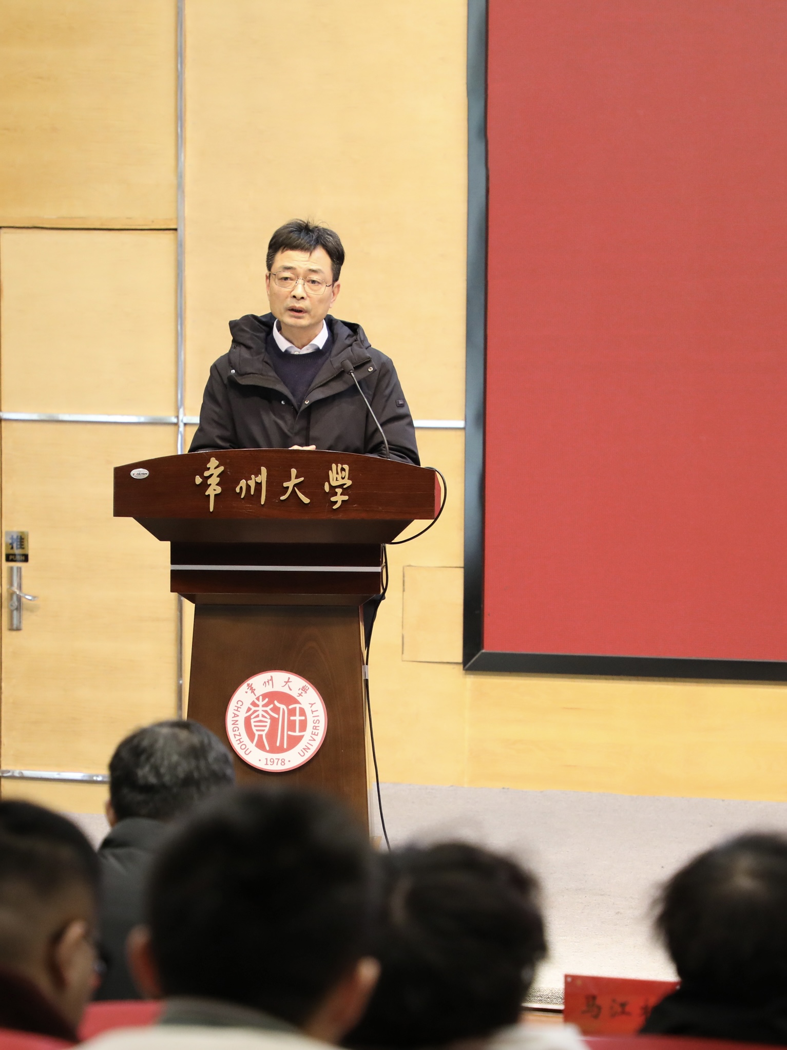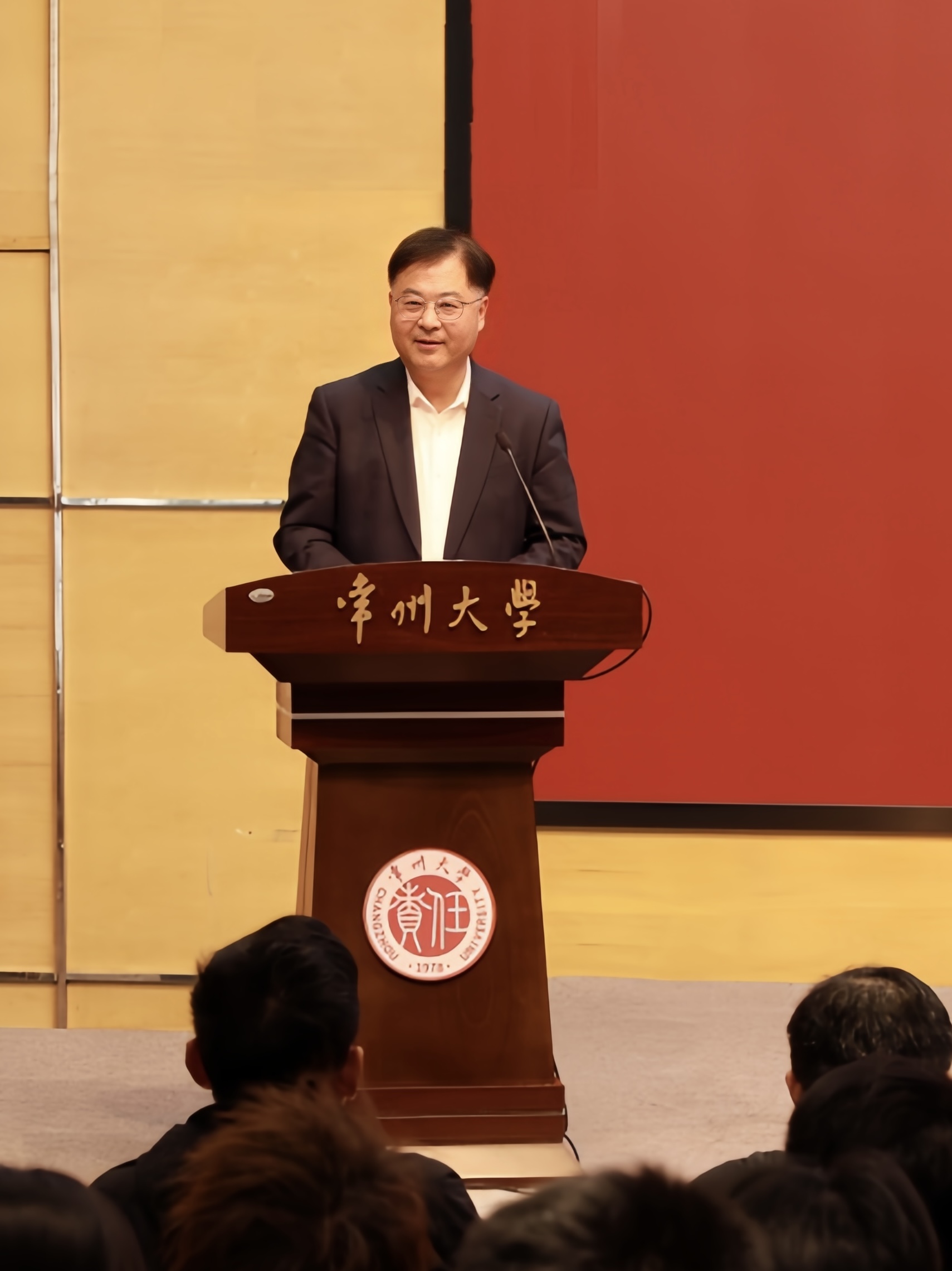 江苏城乡建设职业学院党委委员、副校长袁建刚在讲话中展望了两校合作前景,并对同学们提出殷切期望。