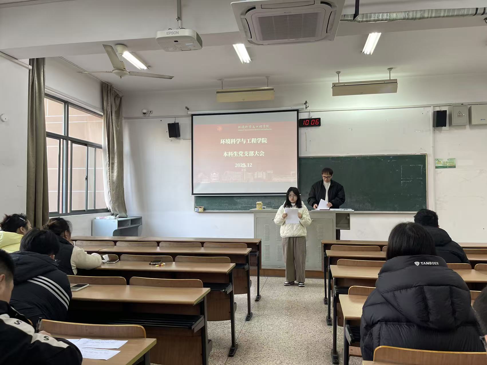 2025年12月16日,常州大学环境学院本科生党支部召开支部大会,聚焦2025下半年发展对象接收与预备党员转正两项核心任务。支部应到实到人数符合规定,会议规范有序推进。