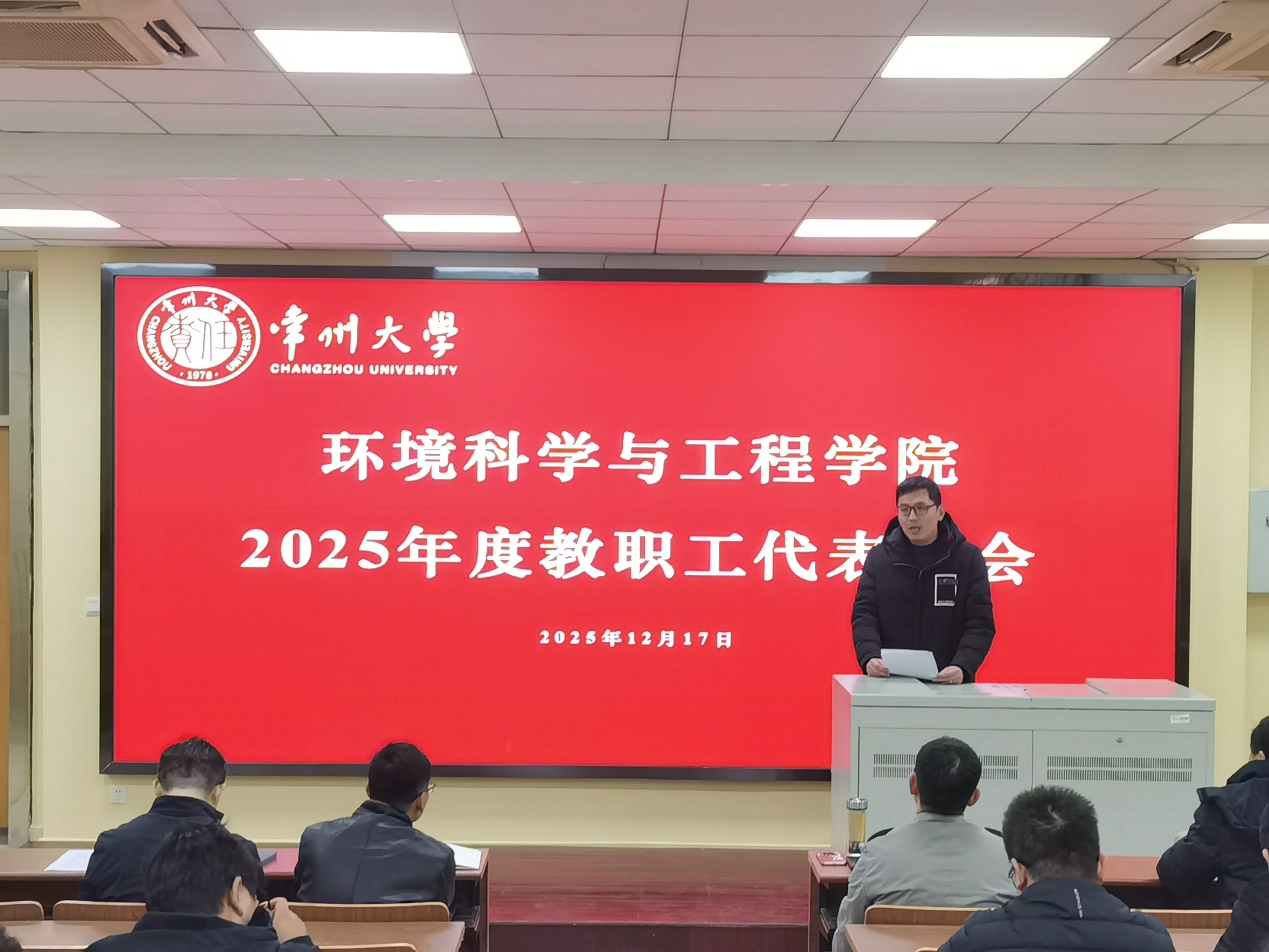 2025年12月17日,常州大学环境科学与工程学院教职工代表大会在庄严的国歌声中隆重开幕。学院党政领导、正式代表、列席代表等齐聚一堂,共商学院发展大计。会议由学院党委书记薛峰主持。