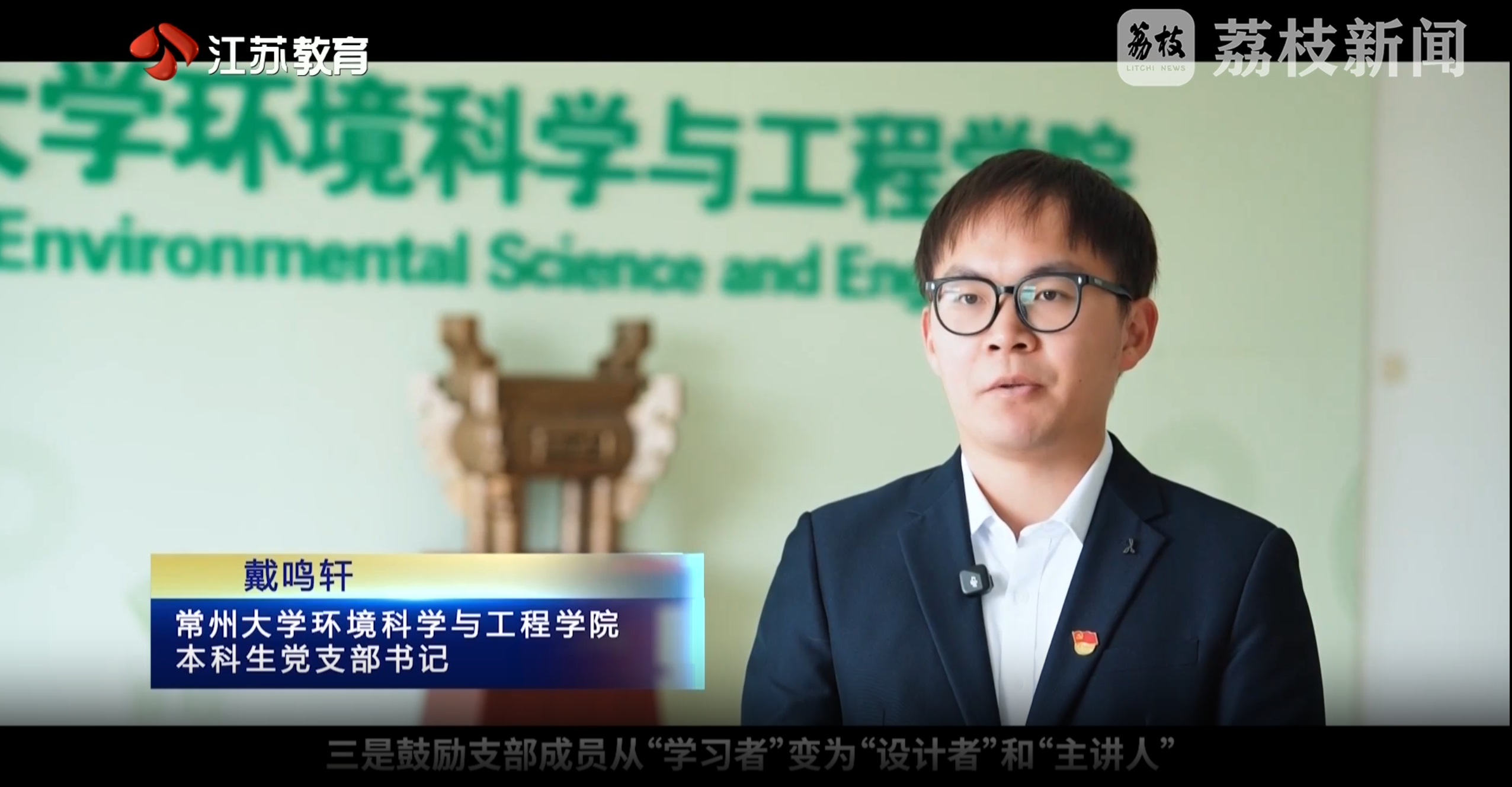 近日,常州大学环境科学与工程学院本科生党支部样板支部建设工作被江苏电视台教育频道报道。