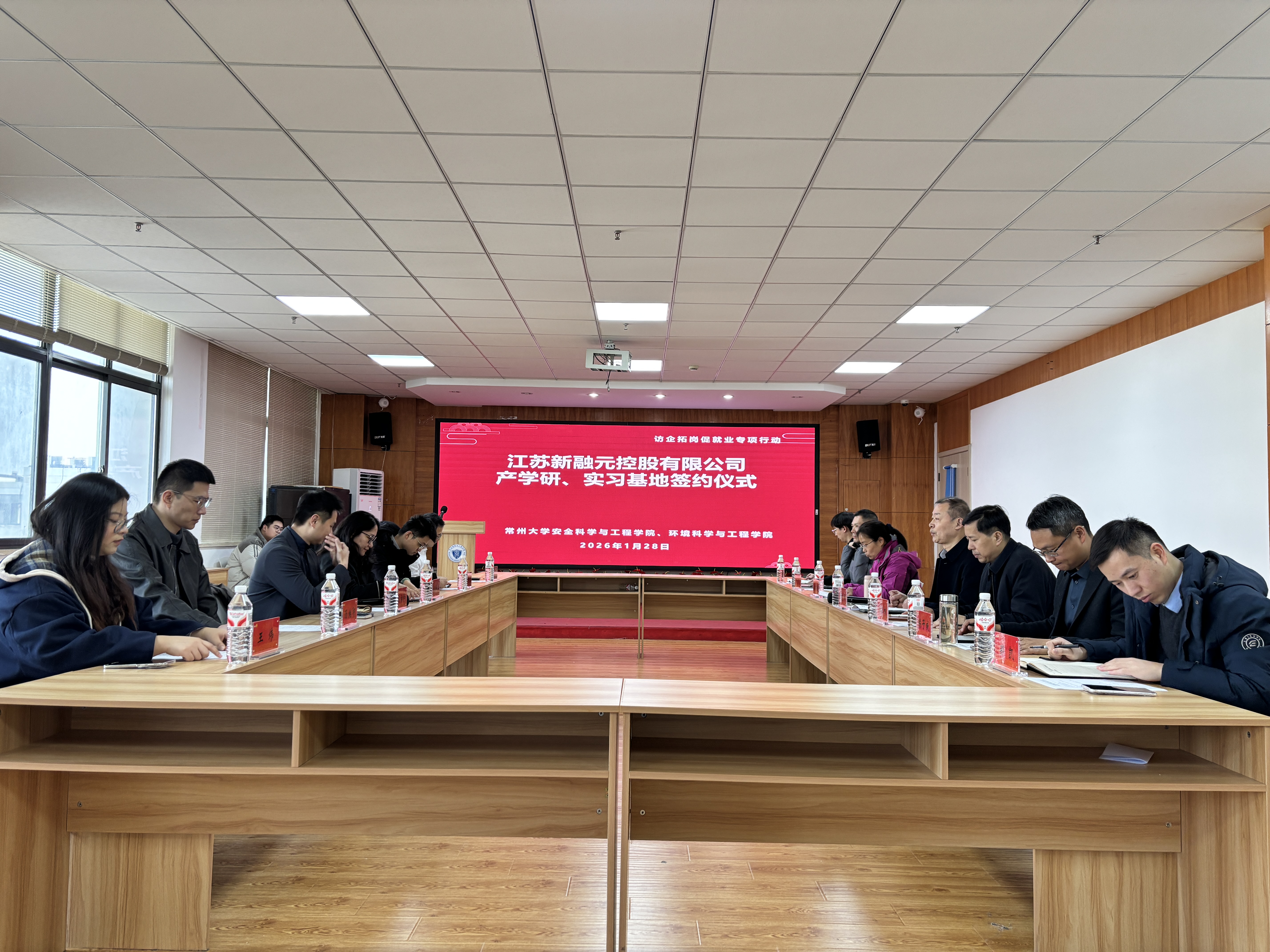 为进一步加强学院与用人单位的交流合作,拓宽毕业生就业渠道,推动毕业生高质量就业,2026年1月28日,常州大学环境科学与工程学院与江苏新融元控股有限公司合作开展“访企拓岗促就业”专项行动。环境学院院长马江权、党委副书记林凌敏,江苏新融元控股有限公司总裁施海晏及企业代表出席。