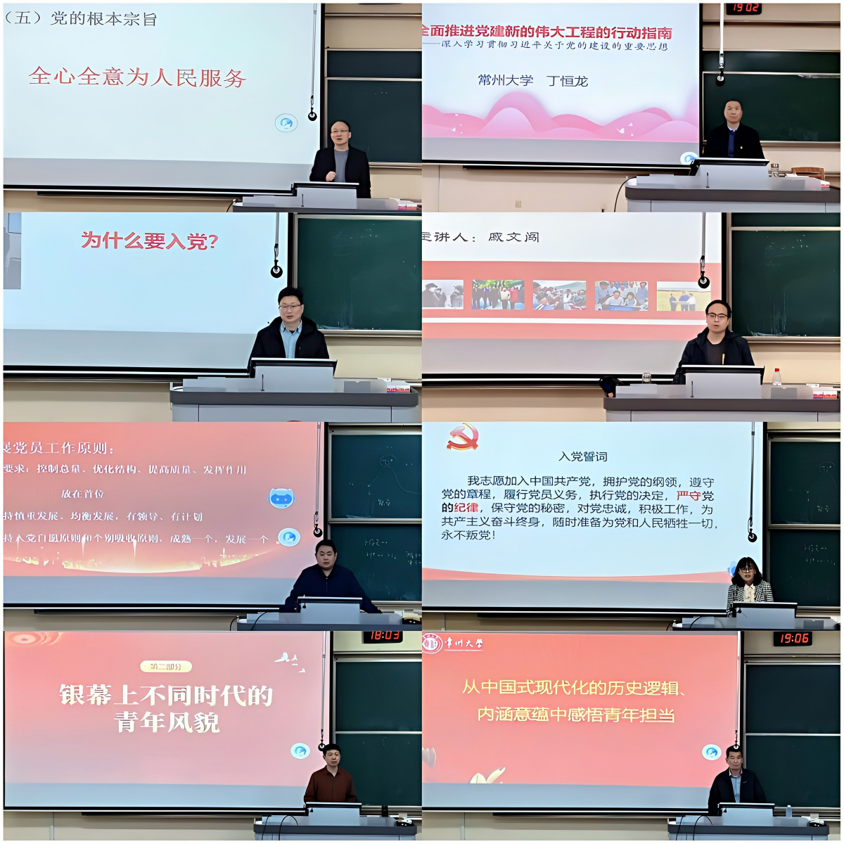 为切实提高学生入党积极分子政治素质和理论修养,筑牢思想根基,我院联合材料学院、城建学院、安全学院以及马克思主义学院于3月31日至4月9日组织开展了第79期入党积极分子培训班。本次培训包含理论教育和实践研学等内容,中共常州市委宣讲团成员丁恒龙等8位主讲老师作专题授课,各班班主任带队学员观看红色电影并指导开展校内劳动实践。