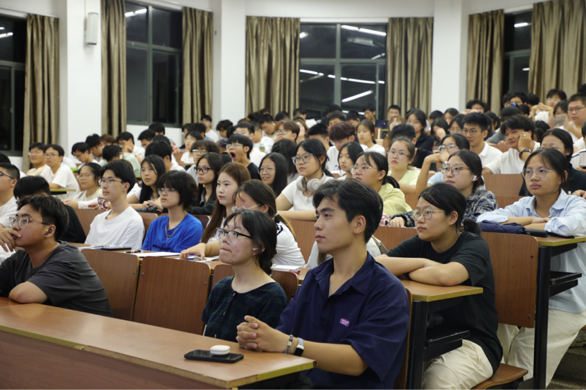 作为常州大学建设发展的亲历者,袁能以饱满的热情和生动的案例,分享了在常大四十余年的学习工作经历。他从校名沿革、办学历程和校友风采三个维度,系统介绍了学校的发展轨迹,重点讲述了历代常大人秉持踏实肯干、严谨求实的学风,推动学校实现跨越式发展的奋斗历程。袁老师还通过杰出校友的成长故事,激励新生见贤思齐,追求卓越。