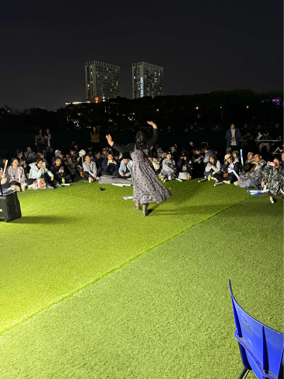 晚会由环工 252 班马鑫爽与资环 253 班樊津竹联袂主持,二人默契十足的配合的拉开了晚会的序幕。14 个精彩节目全部由 2025 级新生自编自导自演,凝聚着青春的创意与无限热忱。深情婉转的双语演唱《富士山下》,用细腻的嗓音传递跨越语言的情感共鸣;各具特色的民族舞蹈轮番上演,舞步轻盈、服饰靓丽,展现了多元文化的独特魅力;妙语连珠的脱口秀紧贴校园生活与军训趣事,包袱不断、笑点密集,引得现场观众捧腹大笑;温暖治愈的吉他弹唱,旋律舒缓、歌声真挚,让晚风都染上了温柔的气息。其中,跨班合作的《抖音舞蹈串烧》节奏明快、活力四射,新生们以饱满的热情、整齐的动作点燃全场,将现场气氛一次次推向高潮,生动诠释了他们打破班级界限、携手共创精彩的团队精神。舞台上流光溢彩,歌舞交融;舞台下掌声雷动,荧光闪烁,新生们用最炽热的青春热情,点亮了这个专属于他们的迷彩之夜。