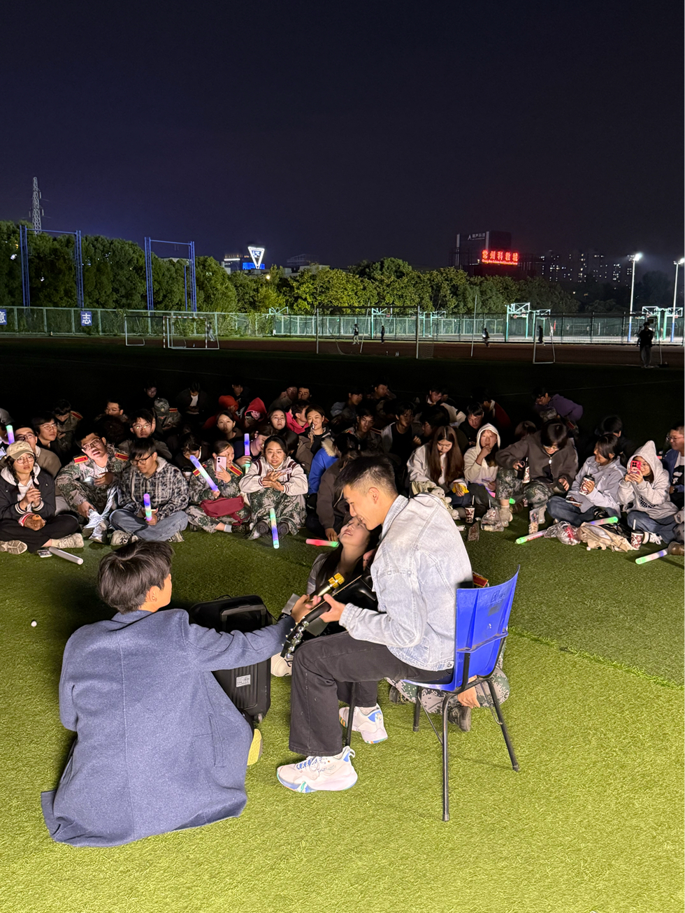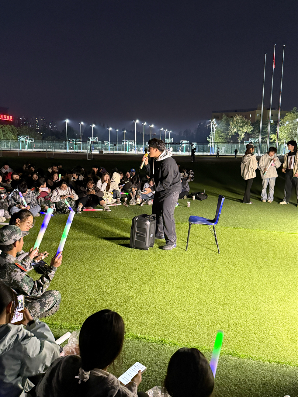 秋风送爽,夜色如墨,星光与灯火交相辉映。11 月 3 日晚,环境学院 2025 级新生军训晚会在田径场草坪温情启幕、圆满落幕。整场晚会以 “迷彩砺青春,绿韵启新程” 为主题,作为军训期间学院精心打造的文化盛宴,不仅为新生搭建了展示才华的璀璨舞台,更成为他们快速融入大学生活、增进同窗情谊的重要契机,为艰苦的军训时光注入了满满的温暖与活力。